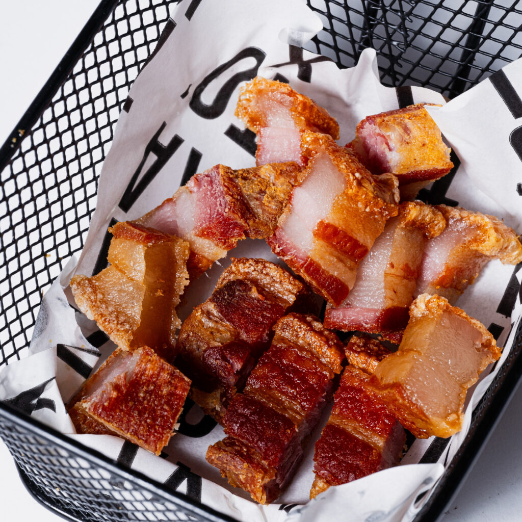 Pan brioche, 180 g. de carne de vaca madurada smash con queso cheddar, panceta de doble curación, cebolla crujiente, tomate, lechuga y nuestra salsa picante.
